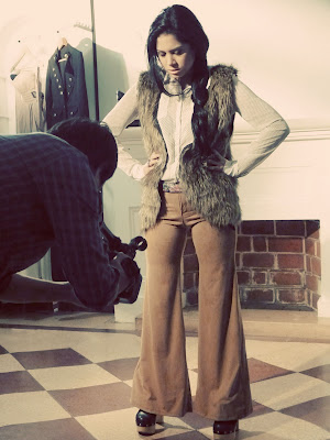 Today we were making a note for a tv program called "Oh Diosas" about the hippie trend and other 60's and 70's influences. We talked about the garments that you must have to get this look like the palazzo pants, the see trough blouses, xl t-shirts, fake fur, maxi skirts and dresses, etc!! Below some pics we took while they were recording the note, hope you like!